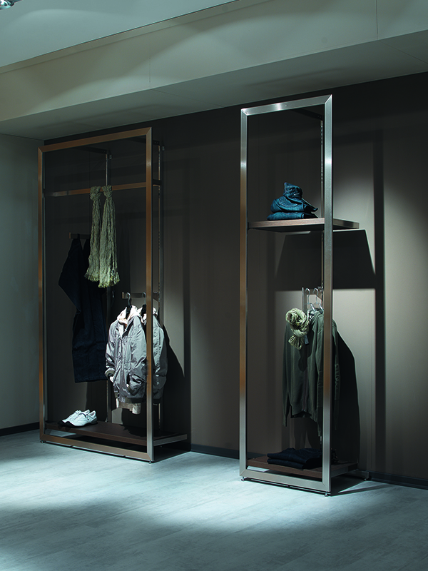 Gondola slobodnostojeca sa perforiranim vertikalama 120cm za odeću Dimenzije: 120x48x240cm Obrada : plastifikacija