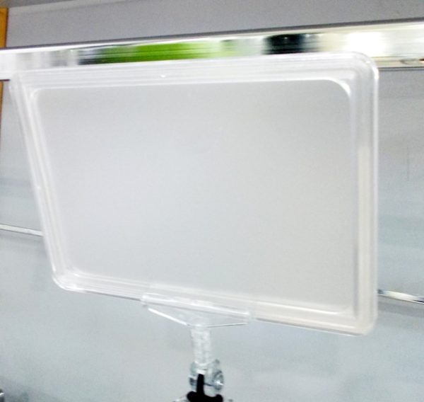 Plastični ram vertikalan za izlaganje cena i obaveštenja A4 format 210x297mm bez držača. Držači mogu da budu raznih tipova. Osnovne boje su crna, plava RAL5015, siva RAL7035, zelena RAL6032, narandžasta RAL 2008, crvena RAL300, bela i žuta RAL 1018. Preporuka je da se papir sa štampanim obaveštenjem zaštiti antireflektujućom PVC folijom šifra RAP 139-00