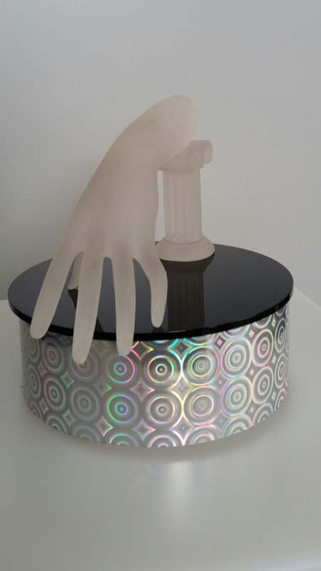 Postolje rotaciono R21cm za izlaganje različitih elemenata srednje veličine. Prečnik postolja je 21cm, visina 8,5cm. Na struju. Može da se pravi u različitim dezenima.