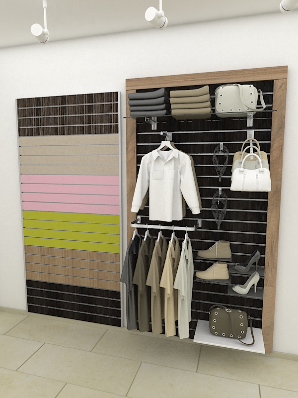 Abbott panel od univera ili medijapana bilo koji dezen sa kanalicama 120x240cm. Paneli su sa standardnim razmakom kanalica na 10cm, 15cm i 20cm i standardna dimenzija panela je 120x240cm, s tim što za drvene dezene zbog cene i uklapanja preporučujemo širinu 100cm.